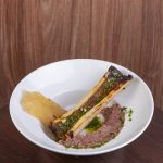Osso buco defumado no tempero de cebola roxa, salsa, páprica, pimenta negra e alho.